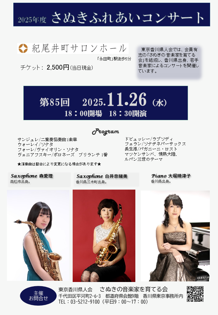 ※ お問い合わせは、さぬきの音楽家を育てる会事務局 TEL:03-5212-9100 まで |